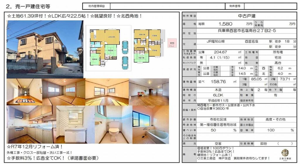 西宮市 中古住宅 生瀬東町 1,800万円