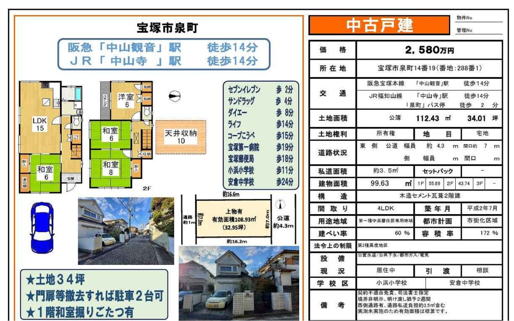 宝塚市泉町 中古住宅 2,580万円