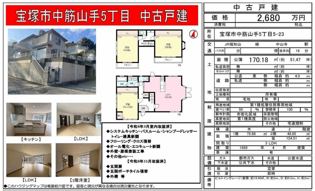 宝塚市中筋山手5丁目 中古住宅 2,680万円