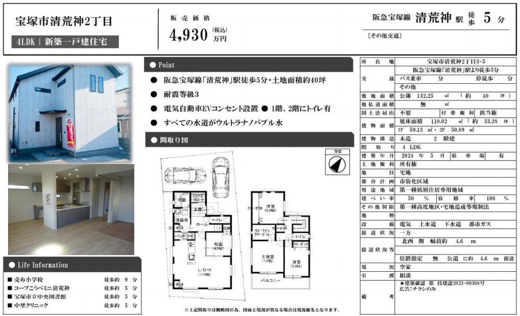 宝塚市 新築住宅 清荒神2丁目 4,930万円 価格変更